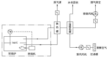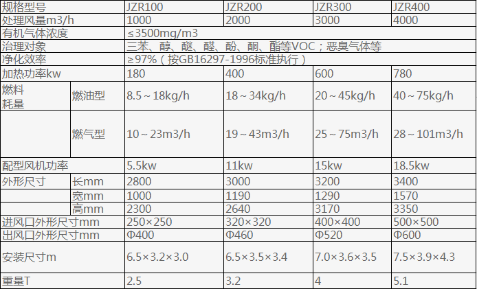 一、设备概述直燃式废气焚烧炉,是利用辅助燃料燃烧所发生热量,把可燃的有害气体的温度提高到反应温度,从而发生氧化分解。本公司积累多年治理有机废气设备制造的经验,在实践的基础上研制出直燃式废气焚烧炉,该设备具有占地面积小,燃烧效率高、容易管理,余热能回收利用等优点,受到用户的好评。二、应用范围直燃式废气焚烧炉,适用于喷涂和烘干设备的废气处理,及石油化工、医药等行业散发的有害气体净化。对有机废气中含水溶性或粘性物质及高分子物质的气体净化更显示出其优点。满足环保和劳动保护要求,同时增加换热设备,达到余热回用、节省能源的目的。1.机械、汽车、摩托车、家用电器、拖拉机等行业的喷漆、烘干(电泳漆烘干)中产生的有机溶剂混合气体的净化处理。 2.适用于化工厂、医药厂、涂装厂、合成树脂厂,胶片厂、有机化学工厂等企业生产过程中多余废气的净化处理。 3.废气的有害物质浓度≤3000mg/m3时,依靠辅助燃料提供热量(此时不能维持燃烧),使废气中可燃物质达到起燃温度而分解。 4.废气反应(燃烧)温度为680~820℃。 5.有机溶剂蒸汽混合气体,当其浓度接近爆炸极限值时进行燃烧不安全,这时采取稀释后,补充氧气再进入焚化炉。 三、工作原理![]() 有机混合废气通过引风机的作用直接送入废气焚烧炉,有机混合废气首先进入换热器进行预热,然后进入炉膛,在燃烧机的火焰高温作用下(680-760℃),使混合气体分解成二氧化碳和水,即: ![]() 由于燃烧是放热过程,所以燃烧后的气体温度比较高(一般在760℃左右),使之进入换热器与低温气体(有机混合废气)进行热交换,使进入的混合废气温度提高或达到反应温度,如果达不到反应温度,加热系统就可以通过自控系统实现补偿加热,使它完全燃烧,这样既节省能源,又能使混合废气有效去除。 四、设备特点1.除臭效果显著、运行稳定、净化效率高、无二次污染。利用热力法燃烧方式氧化分解恶臭气体,在适当的温度下,提供充足的燃烧氧气和一定驻留时间,就能达到除臭效率,净化效果好。同时该设备主机工作稳定,不存在堵塞现象,解决了其它废气处理方法不能解决的问题,并且无二次污染物产生。2.操作简单,维护方便,安全可靠运行,燃烧机采用自动供油(气),自动调节燃烧温度方式进行工作。燃烧器维护方便,同时在设备中考虑到有机废气的爆炸浓度,在结构上有防超温、防爆泄压措施。 3.运行成本低,余热可回收利用随着废气浓度的变化,燃烧温度变化及时反馈,自动调节供油(气)量,可降低真正的运行成本,同时选装换热器余热再利用,达到节能功效。 五、设备选型![]() |