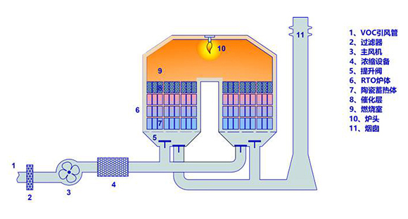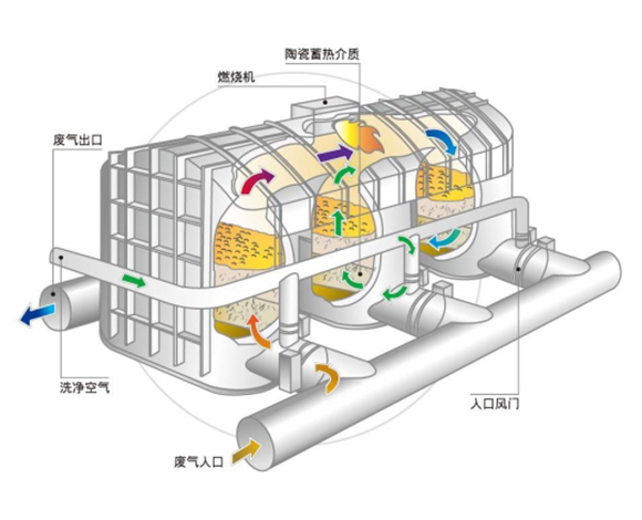 RTO蓄热式焚烧系统是利用陶瓷蓄热体来储存有机废气分解时产生的热量,并用陶瓷蓄热体储存的热能来预热和分解未被处理的有机废气,从而达到很高的热效率,氧化温度一般在 800℃ 到 850℃ 之间,最高达1100℃。 蓄热式焚烧系统主要用于有机废气浓度较低而废气量较大的场合,在有机废气中含有腐蚀性、对催化剂有毒的物质和需要较高温度氧化某些臭气时也非常适用。二、蓄热式焚烧(RTO)工作原理>>二室RTO工作原理有机废气通过引风机输入蓄热室1进行升温,吸收蓄热体中存储的热量,随后进入焚烧室进一步燃烧,升温至设定的温度(760℃),在这个过程中有机成分被彻底分解为CO2和H2O。由于废气在蓄热室1内吸收了上一循环回收的热量,从而减少了燃料消耗。处理过后的高温废气进入蓄热室2进行热交换,热量被蓄热体吸收,随后排放。而蓄热室2存储的热量将可用于下个循环对新输入的废气进行加热。该过程完成后系统自动切换进气和出气阀门改变废气流向,使有机废气经由蓄热室2进入,焚烧处理后由蓄热室1热交换后排放,如此交替切换持续运行。 >>三室RTO工作原理有机废气通过引风机进入蓄热室1吸热,升温后进入焚烧室中进一步加热,使有机废气持续升温直至有机成分彻底分解成CO2和H2O。由于废气在升温过程中利用了蓄热体回收的热量,所以燃料消耗较少。废气经处理后离开燃烧室,进入蓄热室2释放热量后排放,而蓄热室2的蓄热体吸热后用于下个循环加热新输入的低温废气。与此同时,引入部分净化后的气体对蓄热室3进行吹扫以备进行下一轮热交换。该过程全部完成后切换进气和出气阀门,气体由蓄热室2进入,蓄热室3排出,蓄热室1进行吹扫;再接下来的循环则切换为由蓄热室3进入,蓄热室1排出,蓄热室2进行吹扫,如此交替切换持续运行。此外,为了提高热能利用率还可在RTO焚烧炉后设置换热器加强余热利用。 三、蓄热式焚烧(RTO)系统组成1.蓄热体蓄热体是RTO系统的热量载体,它直接影响RTO的热利用率,其主要技术指标如下:(1)蓄热能力:单位体积的蓄热体所能存储的热量越大,蓄热室的体积越小; (2)换热速度:材料的导热系数可以反映热量传递的快慢,导热系数越大热量传递越迅速; (3)热震稳定性:蓄热体在高低温之间连续多次地切换,在巨大温差和短时间变化的情况下,极易发生变形以至于碎裂,堵塞气流通道,影响蓄热效果; (4)抗腐蚀能力:蓄热材料接触的气体介质多为具有强腐蚀性,抗腐蚀能力将影响RTO的使用寿命。 2.切换阀 切换阀是RTO焚烧炉进行循环热交换的关键部件,必须在规定的时间准确地进行切换,其稳定性和可靠性至关重要。因为废气中含有大量粉尘颗粒,切换阀的频繁动作会造成磨损,积攒到一定程度会出现阀门密封不严、动作速度慢等问题,会极大地影响使用性能。 3.烧嘴 烧嘴的主要目的是不让气体与燃料混合地过快,这样会形成局部高温;但也不能混合过慢导致燃料出现二次燃烧甚至燃烧不充分。为了确保燃料在低氧环境下燃烧,需要考虑到燃料与气体间的扩散、与炉内废气的混合以及射流的角度及深度,这些参数应在设计之初根据实际的工艺需求准确计算,否则会直接影响RTO的焚烧效果。 四、蓄热式焚烧(RTO)技术特点>>RTO设备优势①工艺丰富:两室、三室及旋转RTO多种工艺可选; ②去除率高:VOCs去除效率高,最高可达到>99%以上,适宜不同工况; ③适用度高:可处理多种组分,几乎所有有机废气 ④经济效益:可按需配置余热装置;高效换热使设备具有良好的经济性和安全性; ⑤运行安全:熄火保护、超温报警等功能使运行更安全; ⑥使用方便:自动化控制程度高、维修方便; ⑦结构合适:系统结构紧凑,占地面积小; ⑧实时监测:采用PLC系统实现多重保护,实现故障自检和排除,系统稳定完善。 >>RTO技术参数 ![]() 五、蓄热式焚烧(RTO)适用领域● RCO设备可直接应用于中高浓度(100mg/m3-10000 mg/m3)的有机废气净化;● 浓度较低 ,风量较大的涂装、制药行业有机废气 ● 含苯系物、酚类、醛类、酮类、醚类、酯类等有机成分的石油、化工(如塑料、橡胶、合成纤维、有机化工)、塑料、橡胶、制药、印刷(包括印铁、印纸、印塑料)、农药、制鞋、电力电缆生产行业等。 ● 废气含有水银,铅,锡,锌磷,磷化物,砷等造成催化剂中毒的物质 ● 有机废气浓度在100PPM—20000PPM之间。 六、蓄热式焚烧(RTO)设备工艺图![]() ![]() 七、蓄热式焚烧(RTO)案例![]() |